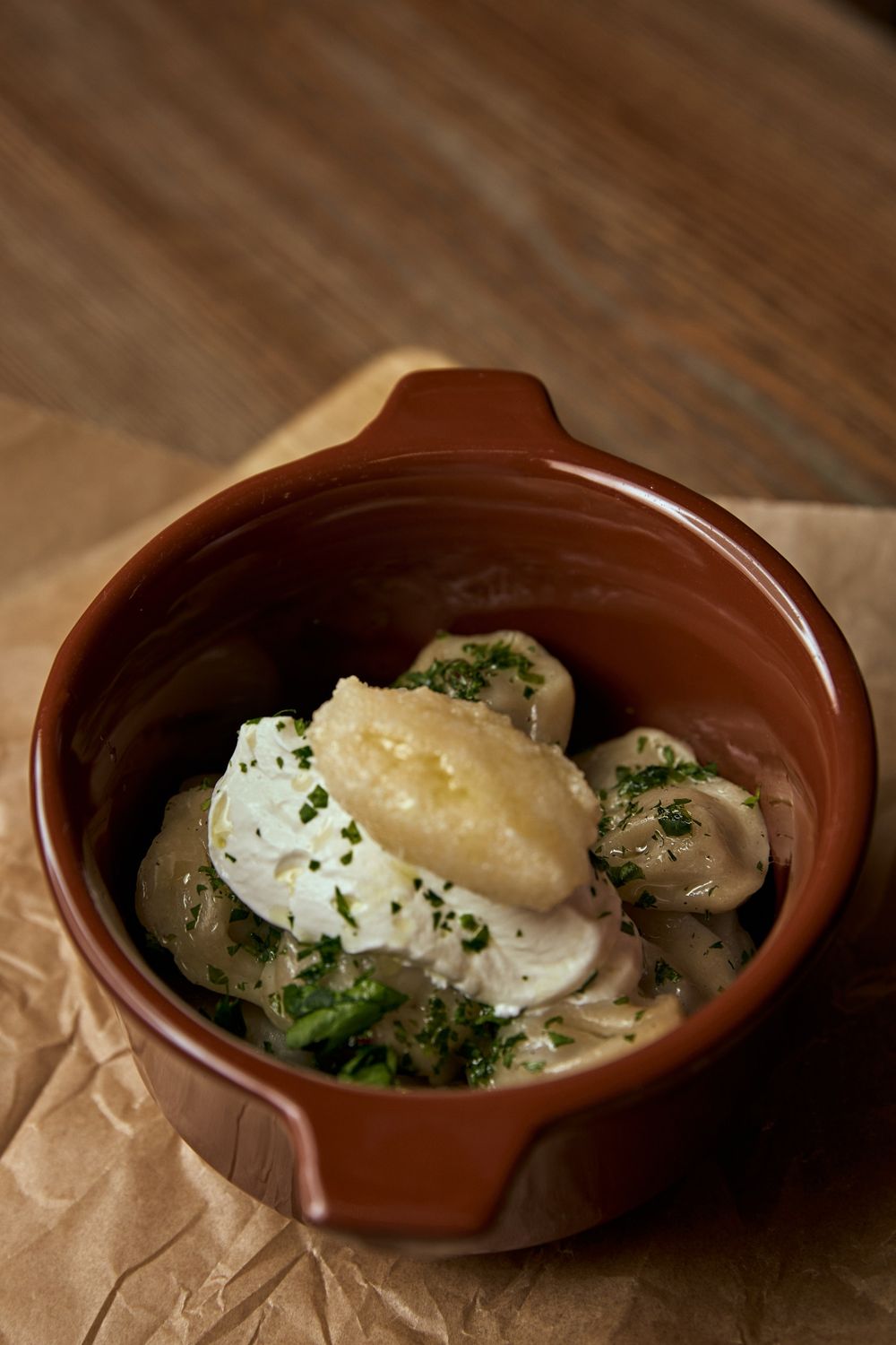Пельмени из щуки с икорно-сметанным соусом